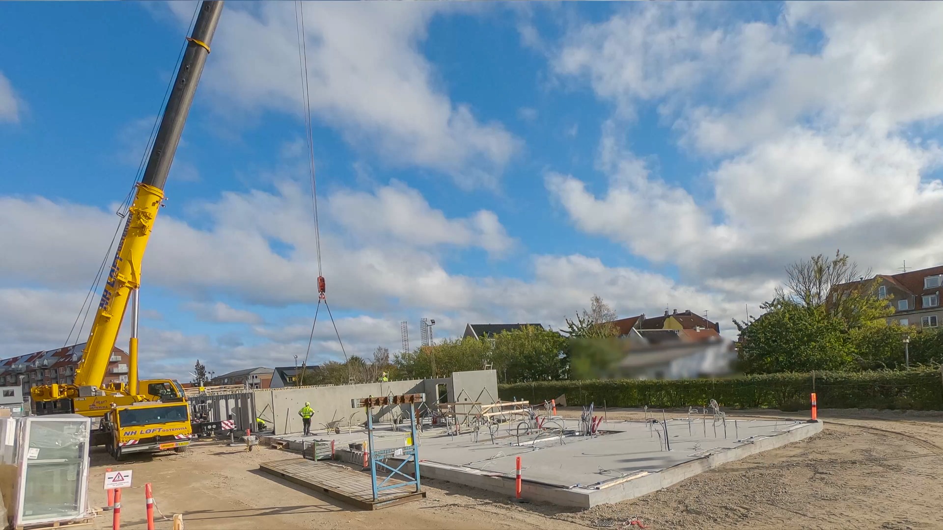 Opførelse af ny boligejendom. Her vises hele opførelsen med en langtids timelapsevideo.
